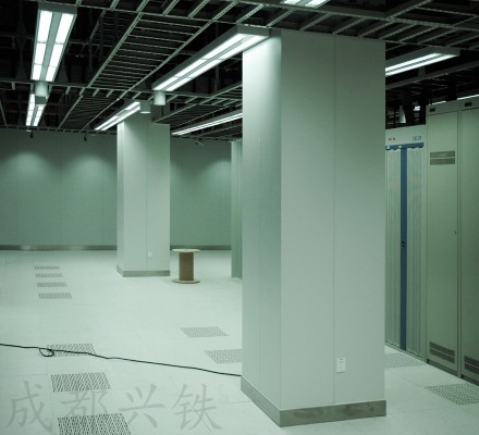 靜電屏蔽用完整的金屬屏蔽體將帶正電導體包圍起來,在屏蔽體的內側將感應出與帶電導體等量的負電荷,外側出現與帶電導體等量的正電荷,如果將金屬屏蔽體接地,則外側的正電荷將流入大地,外側將不會有電場存在,即帶正電導體的電場被屏蔽在金屬屏蔽體內。興鐵機房墻板具有很好的防靜電功能,滿足防靜電需求的同時也保證了機房的安全防潮防火等特點,保障了機房的安全。